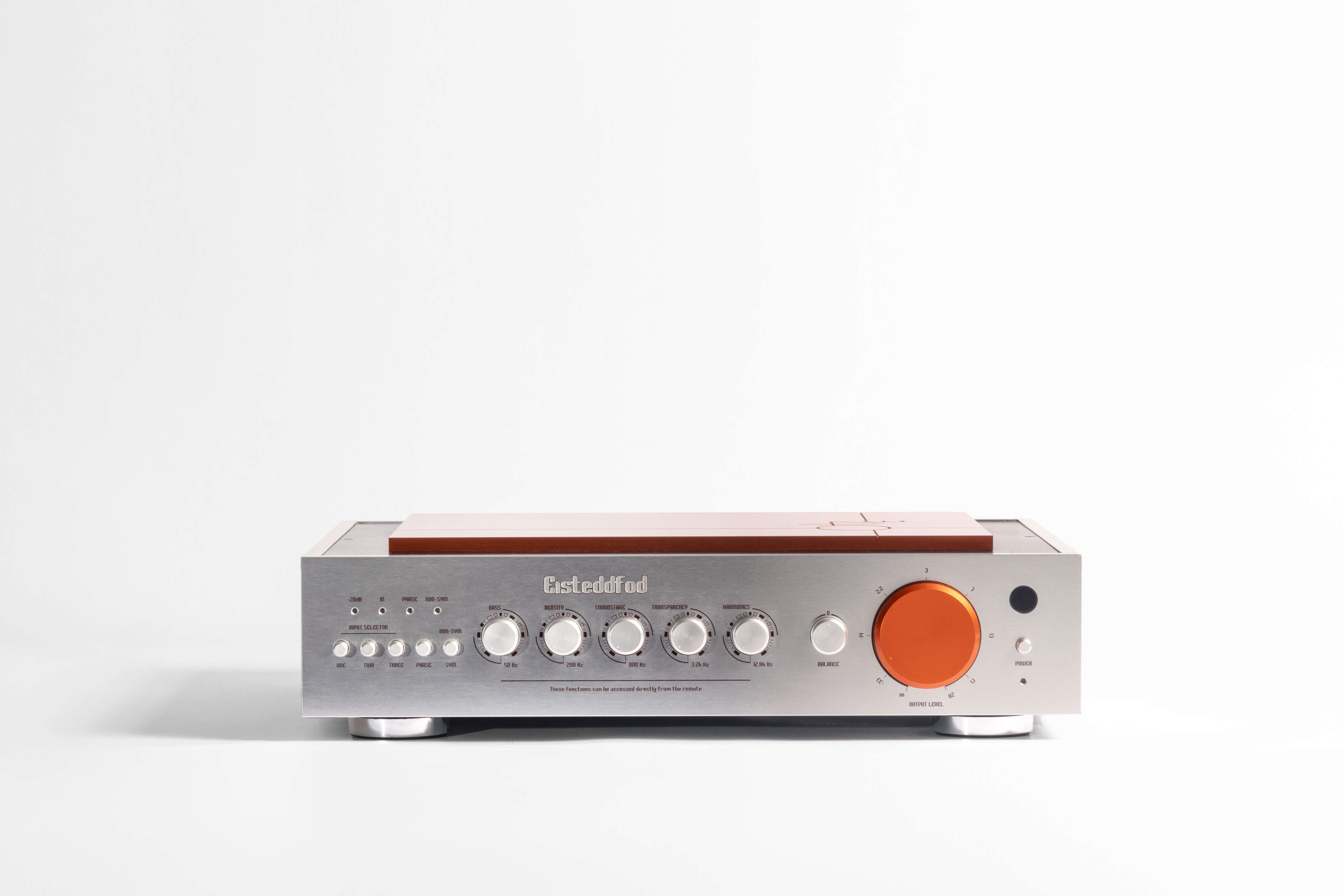 The Eisteddfod 341 Pre Amp offers a 20dB amplification with an exceptional common mode rejection ratio (CMRR) of 90dB across 20Hz to 20kHz. It features an ultra-low distortion rate of 0.005% and customizable frequency equalization at multiple points (50Hz, 200Hz, 800Hz, 3.2kHz, 12.8kHz) with a range of +/- 6dB.